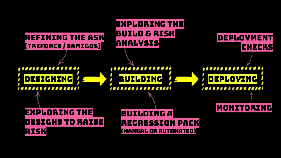 Testing is much more than that, a lot of testing can happen before we’ve built something and we need championing to ensure we bake quality in from the start. This type of testing won’t be the traditional “I asked for X… check it did X… Pass” testing and so teams and hiring managers need to understand what this testing looks like.